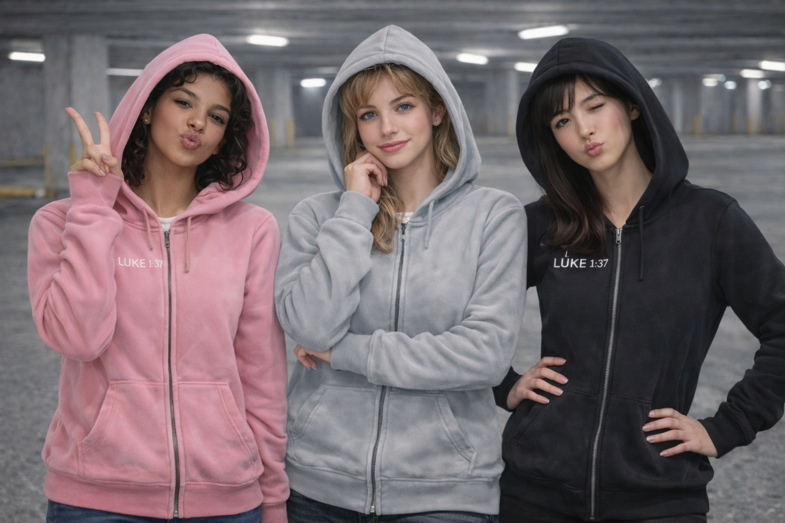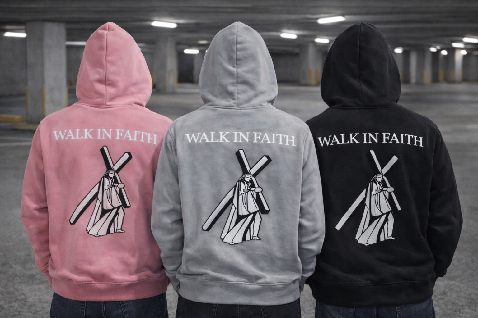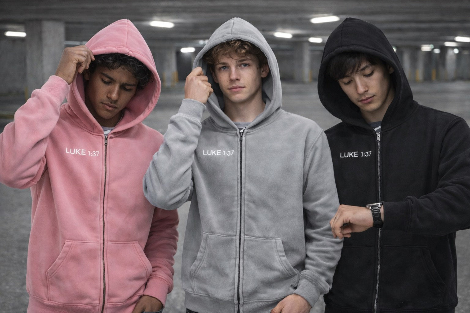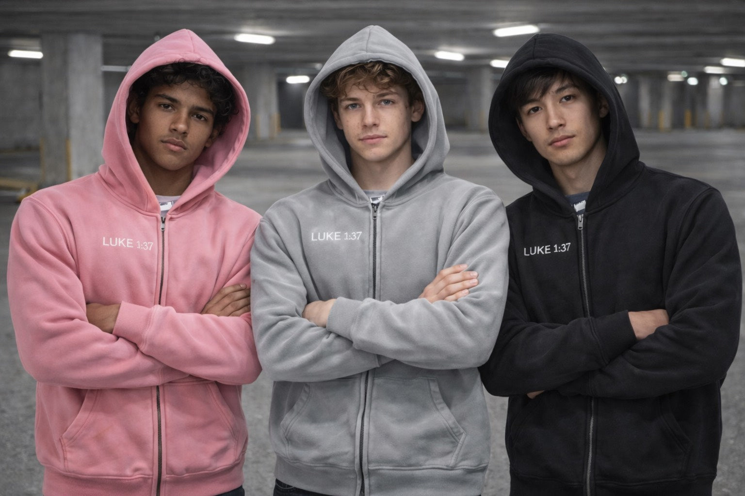 Our brand blends modern streetwear style with strong Christian faith. Inspired by the message of Luke 1:37, every piece is designed to be simple, comfortable, and meaningful. The collection features classic hoodies in pink, black, and grey—each carrying the powerful reminder that with God, nothing is impossible. We create clothing that looks good, feels good, and stands for something greater.